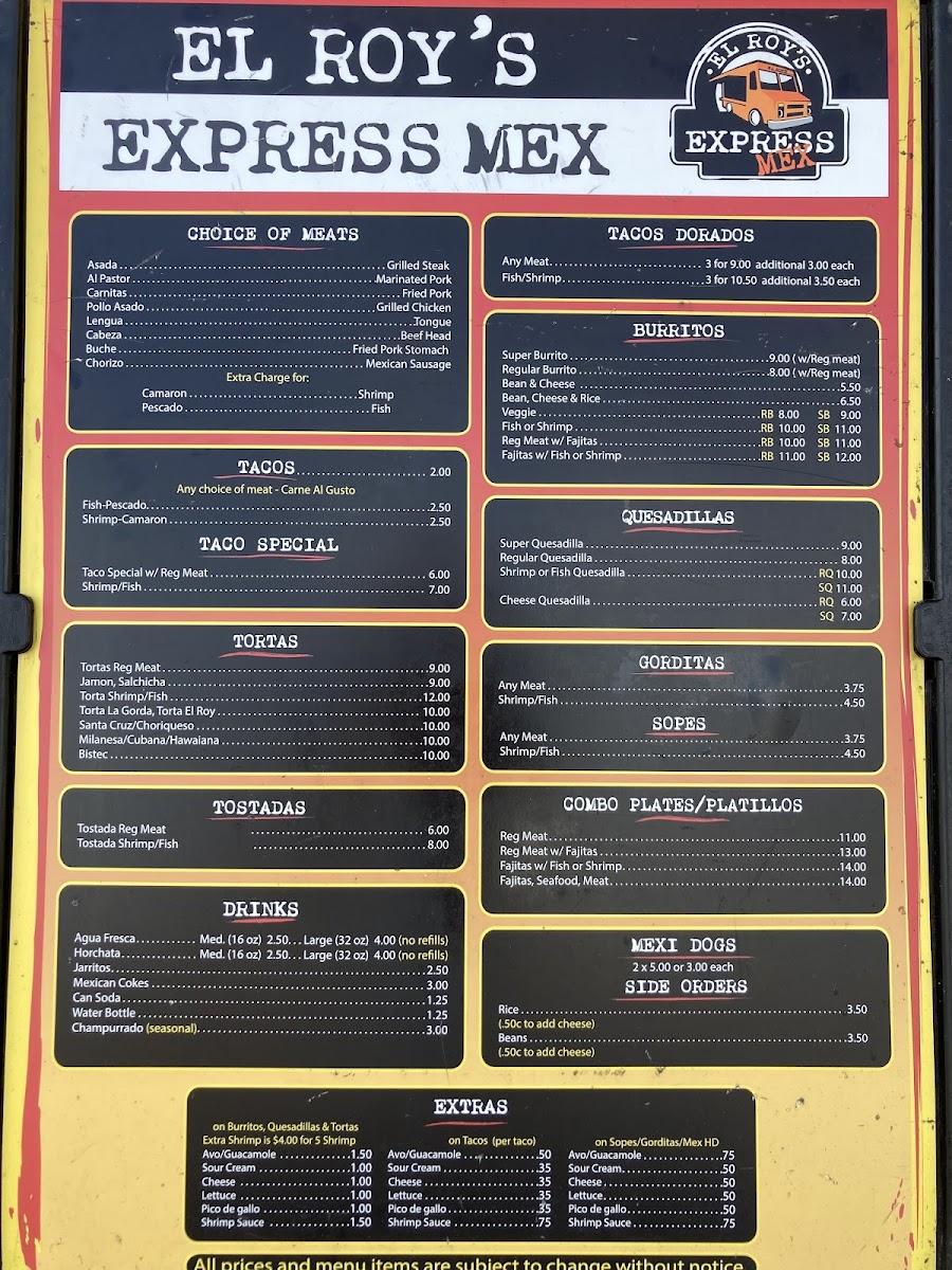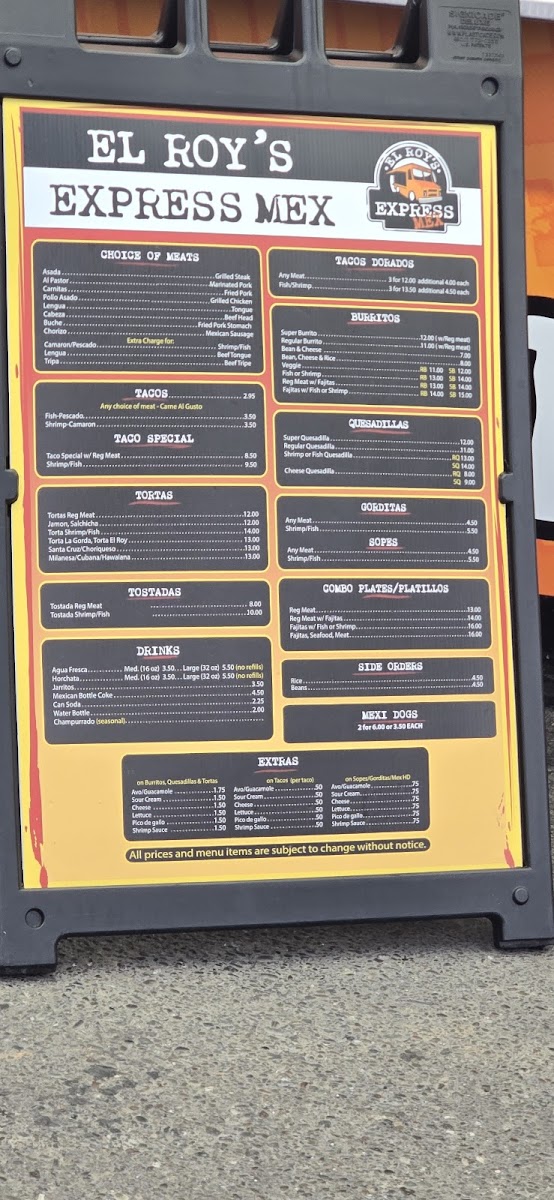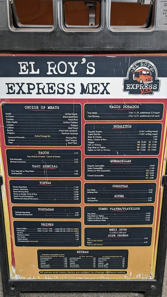 El Roy's Express Mex Menu